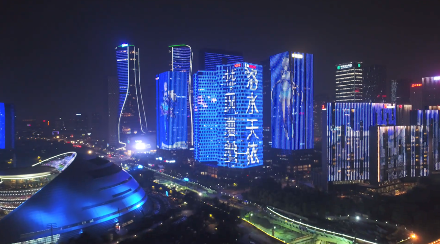 除了关注天依的生日会直播外,还有一个应援吸引了大家的目光。洛天依经纪公司上海禾念发起了绵延三公里、包含35栋楼宇、覆盖523600平方米的灯光应援。