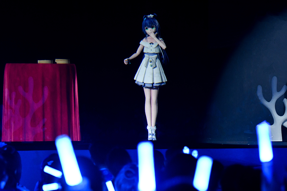 除了魔术,天依第一次挑战了DJ表演。出现在海底贝壳中的天依,通过律动的旋律将现场气氛推向了高潮。