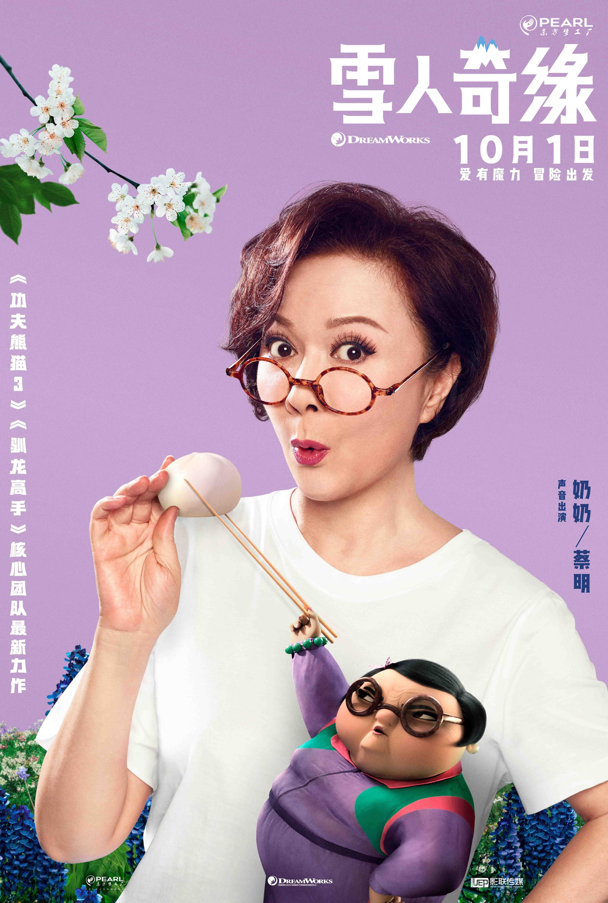 此前参加某配音综艺节目时,国宝级演员蔡明多变的声线和精准的节奏及情绪拿捏,让很多观众惊叹于她的配音功力。此次蔡明为《雪人奇缘》中的奶奶一角倾情献声,也让很多观众倍感期待。蔡明在配音特辑中表示,自己的角色就像中国大部分家庭里很典型的奶奶,“只要她出现的时候,永远在做饭”。除了厨艺满格之外,从角色“圆圆的矮矮的像一个酒坛子一样”的造型和接地气的风趣对白中,不难看出奶奶一角还是电影中的搞笑担当,与蔡明“开心奶奶”的形象不谋而合。