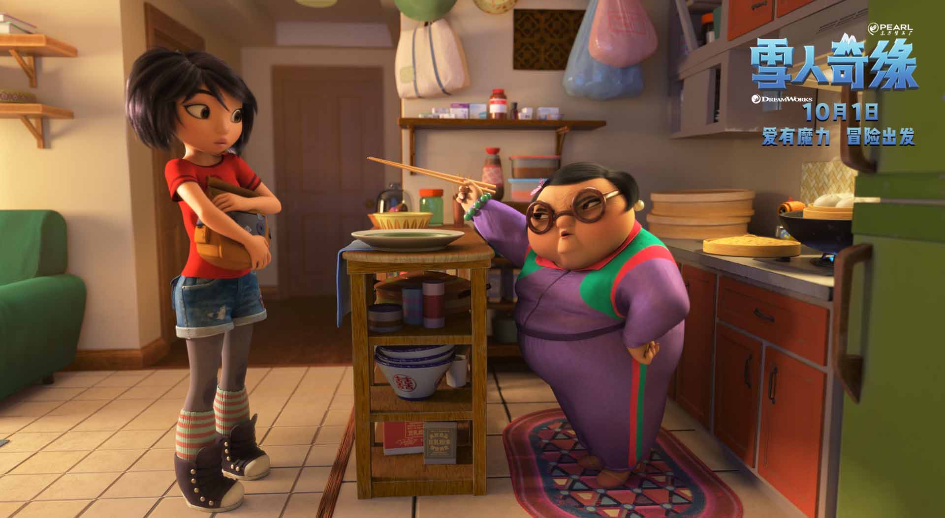 与配音特辑同期发布的海报中,片中的奶奶与蔡明共同拿着一只包子,画面生动有趣之余,也透露出电影的家庭主题。据悉,奶奶拿手的招牌美食包子是片中非常重要的道具,不仅是雪人大毛和鹏鹏最爱的中国代表性美食,同时也是凝聚家人之间情感的纽带。中国人对情感的表达方式往往比较含蓄,而厨艺满格的奶奶,则将对孙女小艺的关心和对一家人团圆的希望,皆融入了亲手烹饪的包子等食物当中。