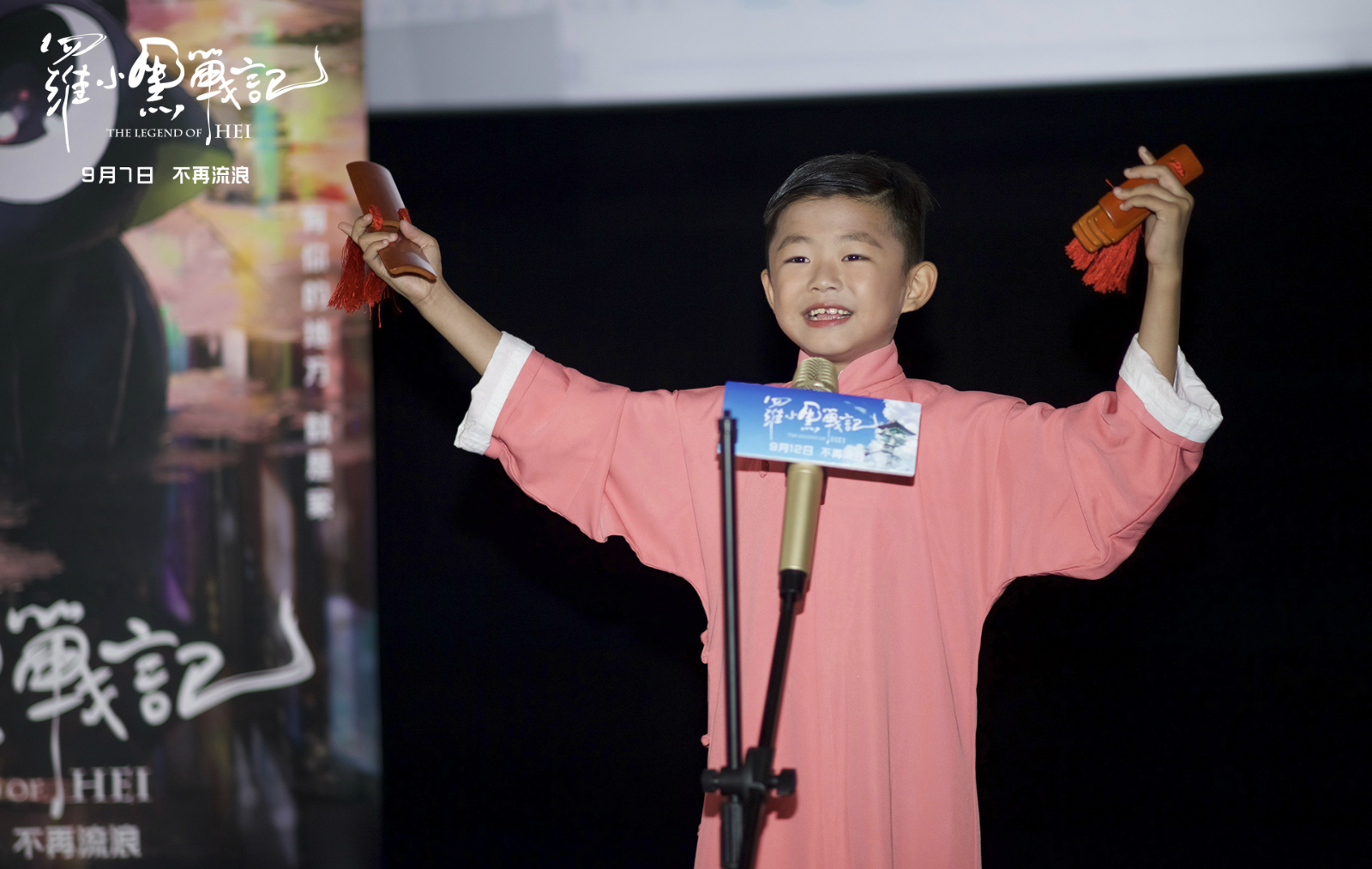 在天津的路演现场,一位小朋友用快板和家乡话表达对《罗小黑战记》的支持:竹板这么一打,别的咱不夸,夸一夸罗小黑的大电影提前上映啦!番剧更新的慢?时长还挺少哒,这几年光追剧对象就跑了仨。欢快有节奏的天津快板不仅惊呆现场导演及小伙伴,同时在开场直接将现场气氛推向高潮。