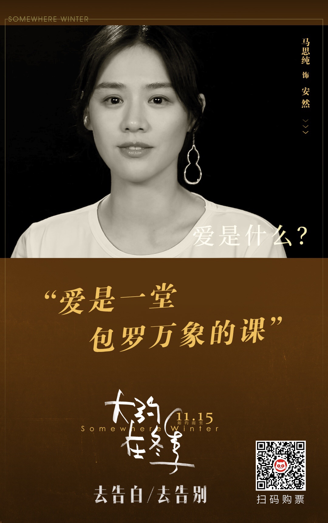 马思纯在情感特辑中说到:“爱情是一堂包罗万象的课,你可以从里面学会很多很多东西,无论是和人的相处,无论是对待爱情的态度,无论是去了解一个人,或者是怎么爱一个人。”影片中安然是一个很上进的人,她曾喊出“总有一天我要让北京大声喊出我的名字”的话,这不是一种虚无狂妄的口号,而是一个自信热烈的女孩对世界的宣言。而当她看尽世间百态,年龄沉淀下来的是一份独有的淡然与稳重。安然在爱里分离也在爱里成长。马思纯曾在一次影片分享会上表示,“安然”是一个她非常难忘的角色。虽然已经过去了半年,但是自己会经常想起她经历过的那些故事,不管是爱恨,还是除了感情以外的人生。