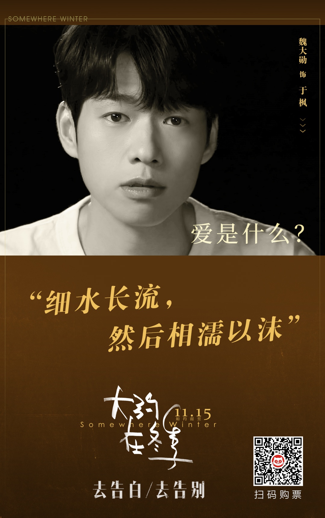 影片里饰演于枫的魏大勋则表示自己的爱情观是“细水长流然后相濡以沫”。电影中于枫用他的一生等待安然的归期,他默默地守护在安然身边,给她最好的照顾和陪伴,却从不打扰她。他的爱是完整的,是始终如一的。如果说齐啸是生命中不可多得的一场大雪;那么于枫就是寒冬里的路灯,不管你在或不在,他都在原地用暖光守候。有的人带你去浪迹天涯,有的人陪你看细水长流。