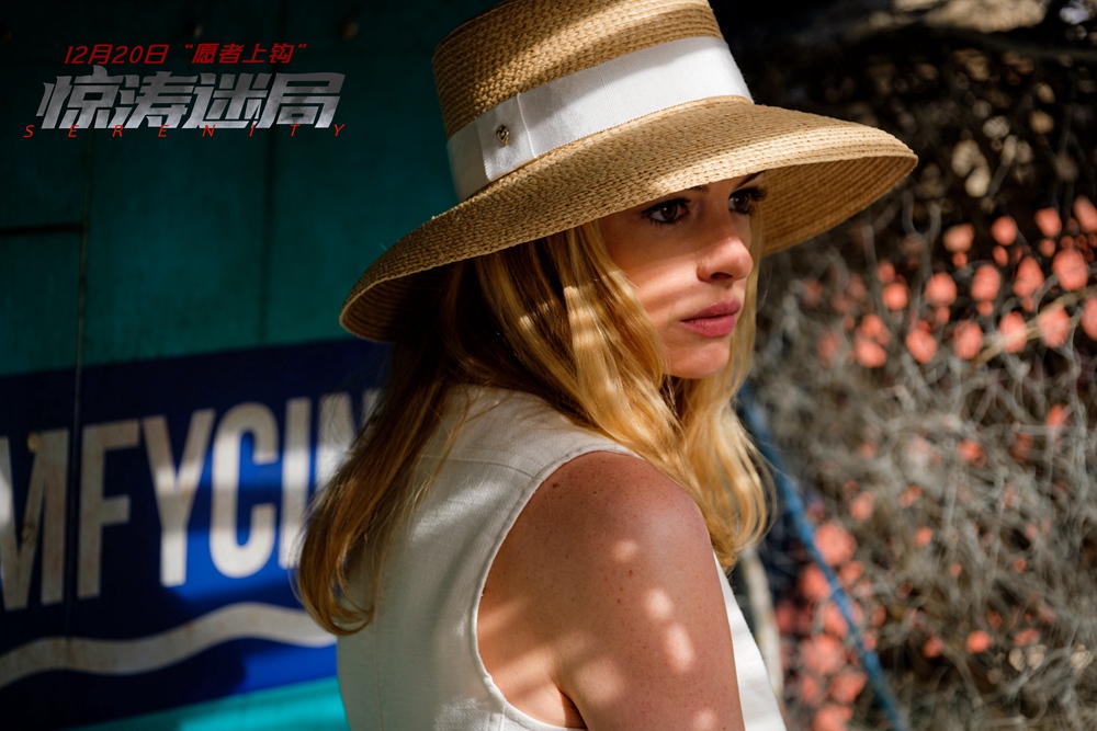 而影片的定档预告则更是将这种悬疑感翻倍升级,无限放大。“我要你开船带他出海,把他丢进海里喂鲨鱼。” 预告片中,安妮·海瑟薇一头靓丽惹眼的金发,似乎在央求马修·麦康纳成为她的“犯罪帮凶”。而这一句话,也打破了看似宁静平和的海岛氛围:只显示小岛的世界地图、不断收线的鱼竿、试图“施暴”的男人、窥视一切的神秘女人……伴随着预告片背景音中越来越急促的收鱼线的声音,似乎距离危险也越来越近,只等待最后一刻的“愿者上钩”。