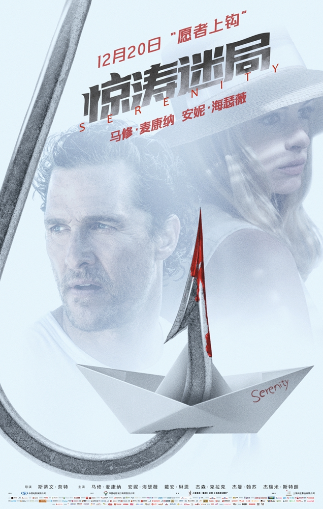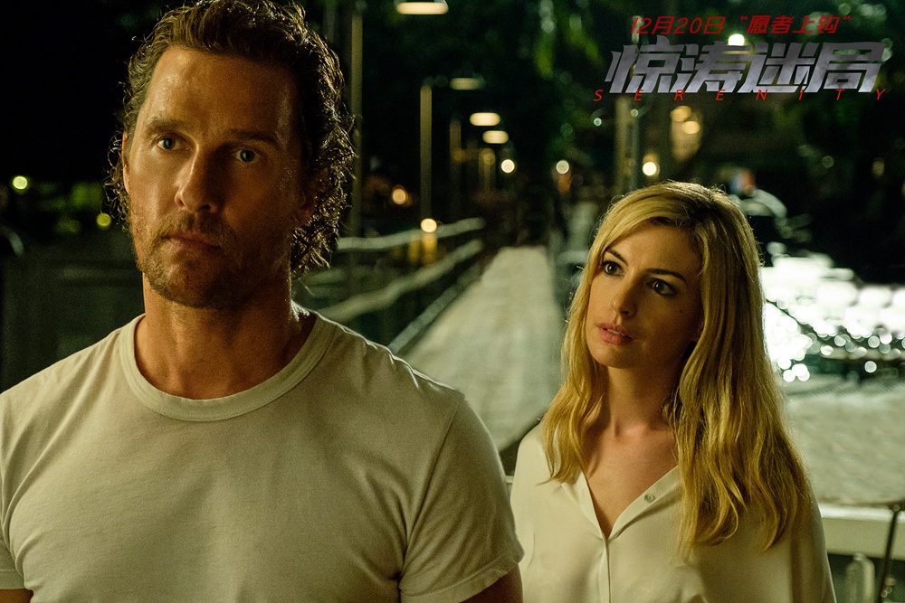 由英国金牌编剧斯蒂文·奈特执导,奥斯卡影帝马修·麦康纳与奥斯卡最佳女配安妮·海瑟薇主演的悬疑科幻犯罪影片《惊涛迷局》(Serenity)今日宣布将于12月20日正式登陆全国各大院线。同时,电影也一齐曝光了定档海报与预告,强剧情与极致的悬疑质感引起了不少青睐类型片观众对影片的期待。此外,安妮·海瑟薇与马修·麦康纳继电影《星际穿越》后时隔5年的再度合作更是激起了大批粉丝及影迷们的关注。