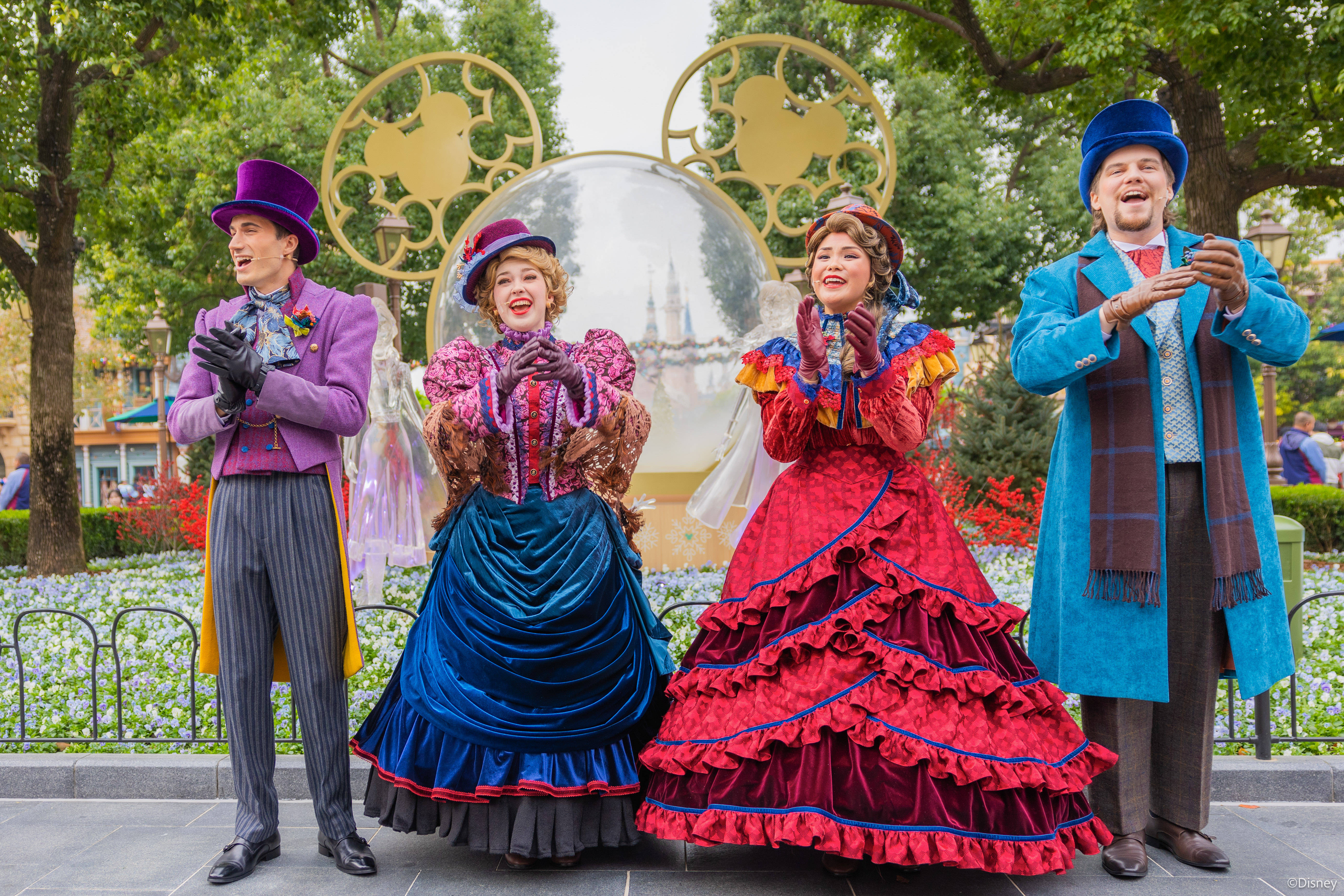 米奇和朋友们以及达菲和朋友们在圣诞季到来之际也纷纷换上闪亮的新衣裳,等不及要与游客分享节日的喜悦。米奇和朋友们的服装灵感来源于童趣满满的发条玩具:米奇头戴军乐队礼帽,身着镶有金边的皇家风格制服;米妮则佩戴小巧皇冠,身穿缀有小雪球的芭蕾舞裙,优雅动人。从不缺席的圣诞老人高飞也已准备就绪,期待现身米奇大街为游客送上节日祝福。