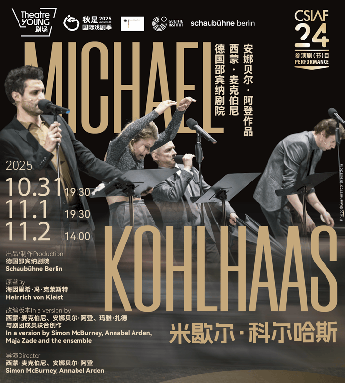 作为本届戏剧季中最受期待的剧团之一,德国邵宾纳剧院继去年《哈姆雷特》和《每一个女人》两部口碑爆棚、场场满座的演出后,再度如约回归上海。这个享誉世界的德国戏剧殿堂将在今秋呈献两部重量级作品——由西蒙·麦克伯尼(Simon McBurney)与安娜贝尔·阿登(Annabel Arden)联袂打造的《米歇尔·科尔哈斯》,以及托马斯·奥斯特玛雅(Thomas Ostermeier)执导的《理查三世》。这两部德语戏剧佳作将分别于10月31日和11月7日在YOUNG剧场完成上海首演,为观众呈现德式戏剧的深邃张力与艺术魅力。
