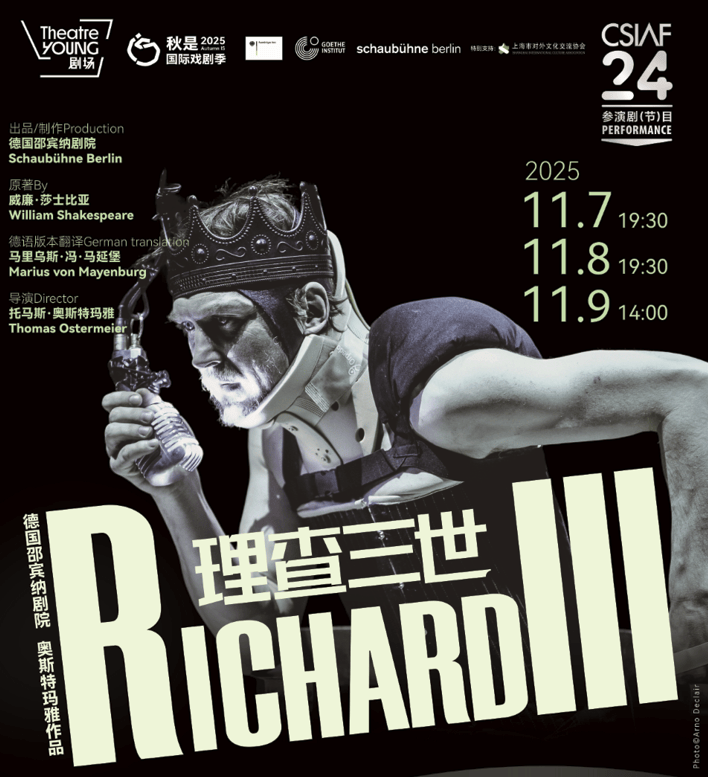 邵宾纳剧院艺术总监、“现代德语戏剧代言人”托马斯·奥斯特玛雅将携其代表作《理查三世》来到上海。自2015年首演以来,这部作品在全球范围内广泛巡演,堪称当代德语戏剧标志性作品之一。值首演十周年之际,《理查三世》将于11月7日在YOUNG剧场震撼首演。奥斯特玛雅以其一贯冷峻、锐利的现实主义风格,颠覆性地重释莎士比亚的经典文本,将政治阴谋与权力狂欢凝结为一场关于人性与欲望的戏剧风暴。饰演理查的德国实力派演员拉斯·艾丁格(Lars Eidinger),曾因出演电影《波斯语课》与电视剧《巴比伦柏林》为中国观众熟知。继去年以《哈姆雷特》惊艳亮相后,今年他将化身“野心之王”,再度带来震撼人心的舞台表现。
