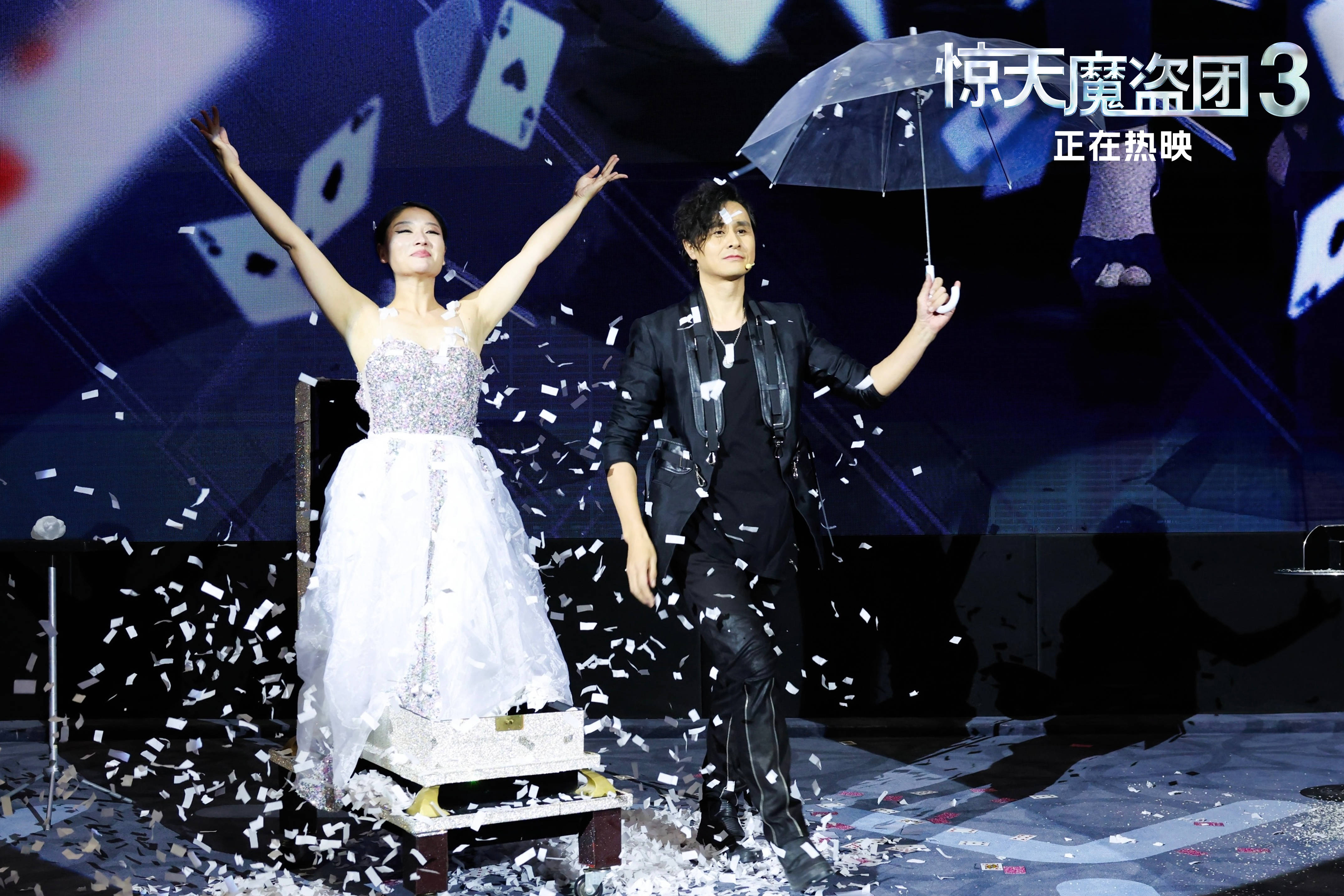 昨日,《惊天魔盗团3》“惊天魔术狂欢夜”中国首映礼在北京盛大举办,厦门金鸡影展分会场同步联动,以“天涯共此时”的仪式感打造双地同欢的魔术盛宴。电影中魔术与犯罪交织的高燃剧情、密集反转让观众全程感慨“爽感拉满”。首映礼现场更彻底打破银幕边界,化身大型沉浸式魔术秀场,观众零距离感受极致魔术手法炫技,纷纷直呼:“银幕内爽到银幕外,太过瘾了!”魔术师刘世杰、孙峥以电影经典魔术场面为蓝本,不仅还原“飞牌奇迹”“钻石爆破”“雪花变装”等精彩魔术场面,更融入中国传统戏法,用“中国钱”创意炸场。现场更派送“看惊天魔盗团3马上有钱”口令红包,重磅嘉宾黄子弘凡也参与魔术互动——送钻石,将影片“马上有钱”的好运氛围拉满。当天,众多嘉宾齐聚共赴狂欢:《喜人奇妙夜》“双高胎”高超、高越连呼三次好爽;“一把郝龚箭”龚英杰、郝旭涛则玩起趣味反差,从“默契怪盗”变“隔阂怪盗”,一个夸“好”,一个赞“棒”;演员何蓝逗更亲自参与魔术表演,一系列趣味互动热闹十足。首映礼尾声,梦幻“钻石雨”漫天降落,观众们纷纷举手机记录,激动喊道:“像真的在‘骑士团’的魔术大秀现场,太震撼了!”尖叫与掌声此起彼伏,将狂欢氛围一次次推向顶峰!