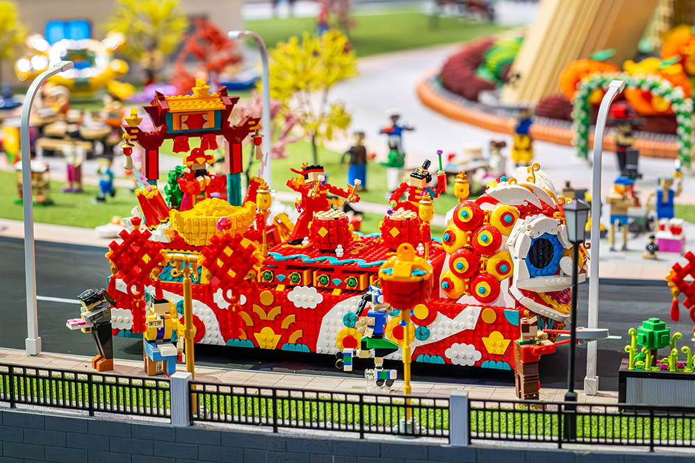 “搭个鞭炮过大年”活动邀请每一位游客成为节日的共创者。在乐高广场,一座总高约3.98米的巨型鞭炮模型即将亮相,长达十余米区域将由玩乐家们自由发挥,接力拼搭新春积木大鞭炮,“点燃”寓意着节节高升的新年祝福。奇趣积木城还将化身新春乐市集,推出写福字、踢蹴鞠等多样年俗体验活动,让家庭亲友在共创共乐中收获满满幸福时光。